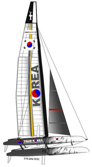 Es ist die erste Teilnahme Koreas am America’s Cup bezw.einer Vorfeldorganisation.Team Korea hat auch seine Herausforderung für den34. America’s Cup angemeldet.Es gibt aber keine Informationen, daß ein AC72 konstruiert wird.