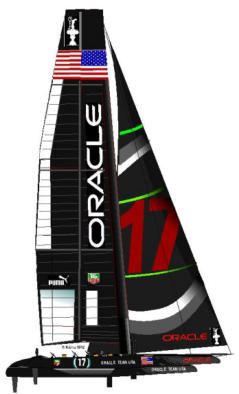 ein mächtiger Katamaran mit 72 Fuß, mit dem der Lous Vuitton Cup 2013 und der America's Cup 2013 ausgetragen