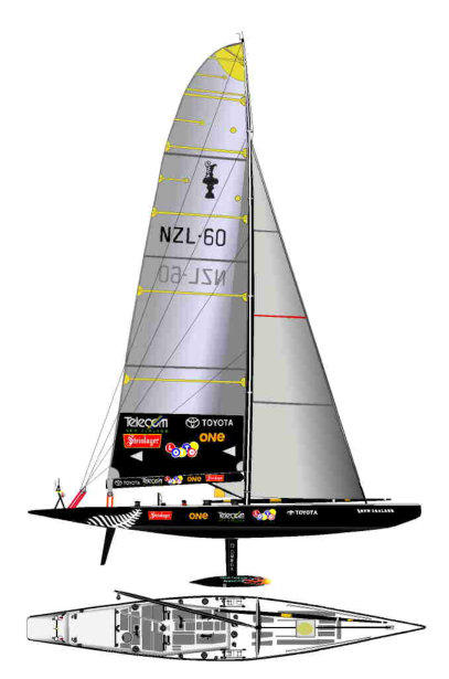 Das Neuseeländische Syndikat erreichte mit dem neuerlichen AC Sieg, jetzt mit der NZL-60, den Höhepunkt seines Erfolges.Die Konstruktion wurde durch einen “Knick-Bug “ verbessert. Das heißt während der offiziellen Vermessung wurde die max. Wasserlinie von 90 Fuß nicht überschritten. Wenn die Jacht aber krängte, vergrößerte diese Bugkonstruktion die Wasserlinien-Länge nach dem physikalischen Gesetz “ Je länger die Wasserlinie, umso schneller das Boot - oder “die Länge läuft”.Eine andere Verbesserung war der “Millennium-Mast” eine spezielle Konstruktion eines Diamant-Rigs, die zu einem leichteren und stärkeren Mast führte. Die horizontalen Kielflossen auf der Bombe wurden auf die Bootsbreite verlängert und auf Höhe der senkrechten Flosse gesetzt. Wieder, wenn die Jacht krängte, wurde die sich “verkürzende Kiel-Finne” durch die tiefer tauchende Flosse “verlängert”.