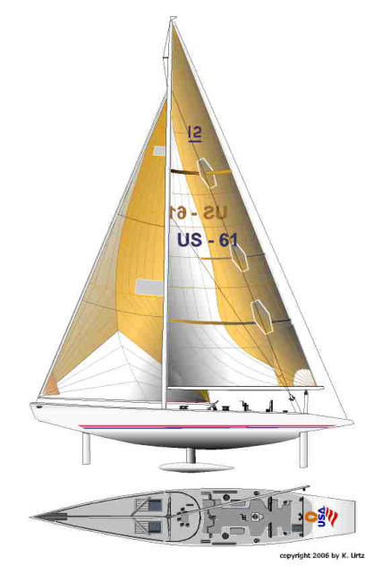 Yacht / Country : USA (R-1) / USA Sail Number : 12 US-61Syndicate : Golden Gate Challenge San FranciscoCEO : Ron YoungYacht Club: St. Francis Yacht ClubDesigner : Gary Mull, Alberto CalderonBoat Builder : Robert E. Derector Ship Yards, N.YSkipper: Tom Blackaller