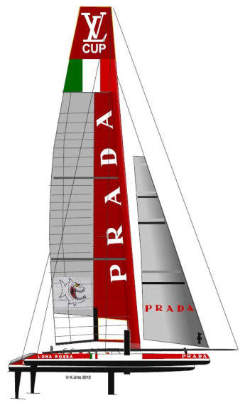 Luna Rossa Challenge konstruierte nur einen Katamaran, der aber laufend – auch im Design- geändert und verbessert wurde.Die zeitlich begrenzte Strategische Kooperation mit dem Neuseeländischen Team hatte sich für die Italiener voll bezahlt. Im Sommer und Herbst 2012 liefen die Katamaran von ETNZ und Luna Rossa vom Stapel.Luna Rossa trainierte im nachfolgenden Winter in Auckland ( = Sommer in der südlichen Hemisphäre) gemeinsam mit ETNZ. Vor dem Rennen war LR 78 Tage auf dem Wasser.Artemis Racing Big Blue verblieben bis zum 1. Renntag nur 12, um den Katamaran zu optimieren und seine Segeleigenschaften auszuloten.Luna Rossa gewann am 10. August das Semifinale 4:0